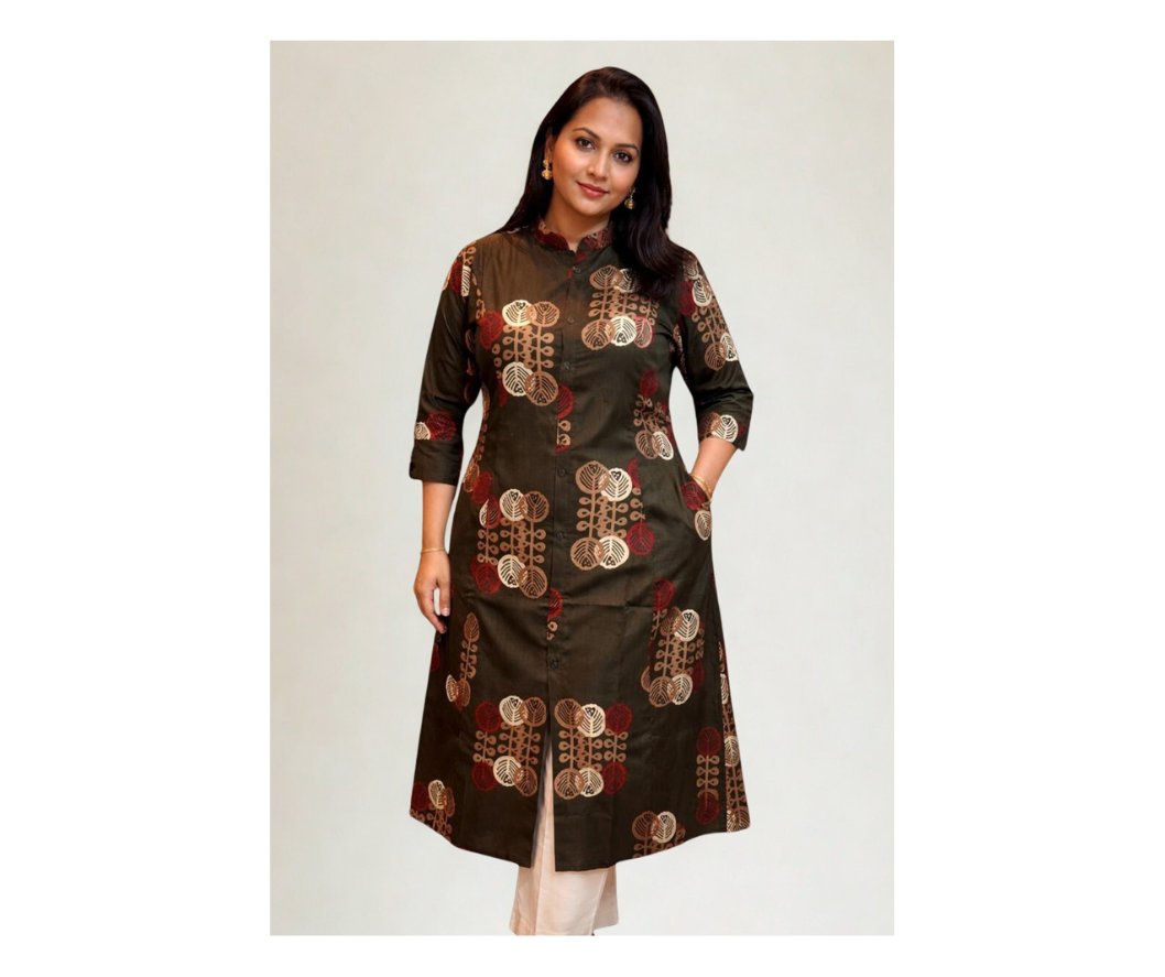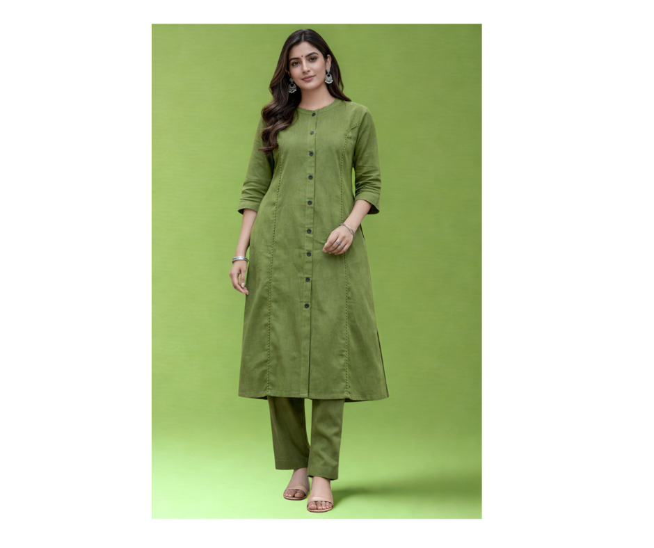 Olive Green Printed Cotton Kurti with Pant Set – Elegant Women’s Ethnic Co-ord Outfit